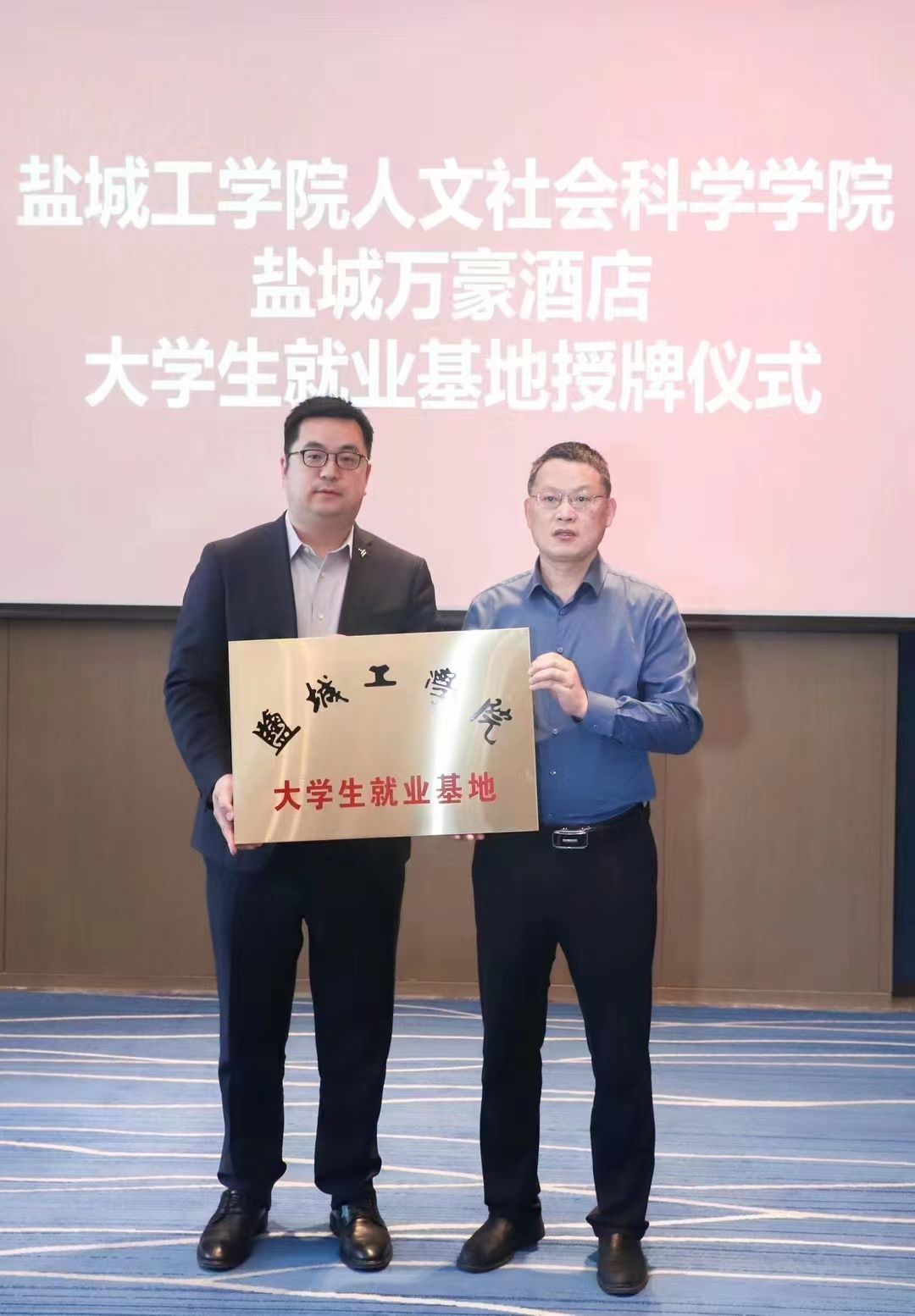 张勤芳一行参观了盐城万豪酒店的整体设计布局,认真听取酒店总经理蔡陈杰关于当前发展现状和运营管理模式的汇报,详细了解企业用人需求和公司实习就业员工的工作表现,重点介绍了qm球盟会办学理念特色、人才培养定位、产教融合经验做法等基本情况。何登溢与蔡陈杰签订了老员工就业基地协议,并向酒店授牌。