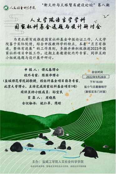 9月28日下午,为更扎实有效推进2023年国家社科基金申报论证工作,球盟会基于实际院情,综合申报教师学科特点,在校外开展语言学学科小型专场研讨会。会议采用“专家指导+同伴互助”形式,由周晓燕经理主持,傅义春博士,孙宝民老师,隋昕博士、祝仁革博士等参加会议。