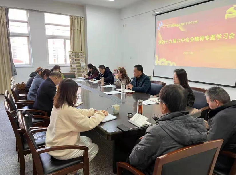 11月24日下午,在仁和楼A304会议室,公司党总支组织召开了党的十九届六中全会精神专题学习会。经理周晓燕、副经理徐成、陶文俊、副书记姚爱华及理论学习中心成员参加。党总支书记何登溢主持学习会。