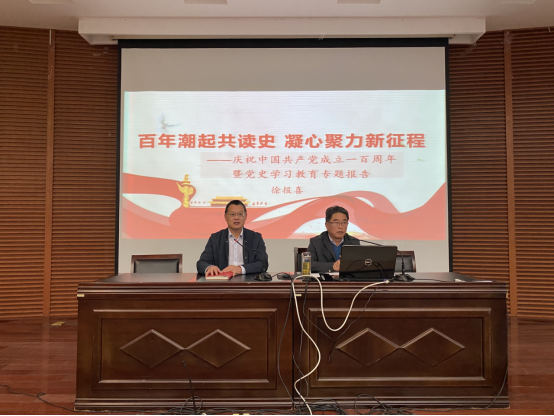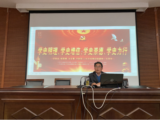 徐报喜从“百年大党的艰辛与辉煌”“新时代中国再出发”“弘扬伟大的建党精神”等三个部分带领大家回顾了百年建党的漫长历史,介绍了陈潭秋、陈树湘等多名革命烈士,让大家深刻地认识到中国共产党百年的艰辛与辉煌,勉励大家坚持新发展理念,从党史学习中不断汲取智慧与力量,弘扬伟大的建党精神,成为一名可以担当大任的时代新人。