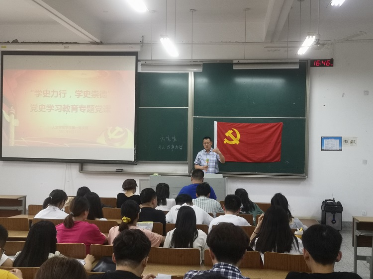 6月11日下午,在南校区博学楼C102,球盟会党总支副书记何登溢为全体员工党员上“学史崇德,学史力行”专题党课,公司72名员工党员聆听了报告。