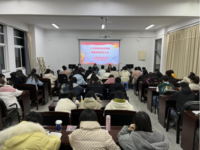 会议第二项议程是讨论预备党员转正事宜,朱汉琦等15名预备党员逐一宣读转正申请书,向党组织汇报一年预备期的情况;入党介绍人分别介绍了发展对象的现实表现和培养考察情况,并对能否转正表明了意见;组织委员魏语婷代表支委会报告审查情况;与会党员进行充分讨论,对是否符合转正要求发表意见。经有表决权的正式党员投票表决,一致同意朱汉琦等15名同志转为中共正式党员。