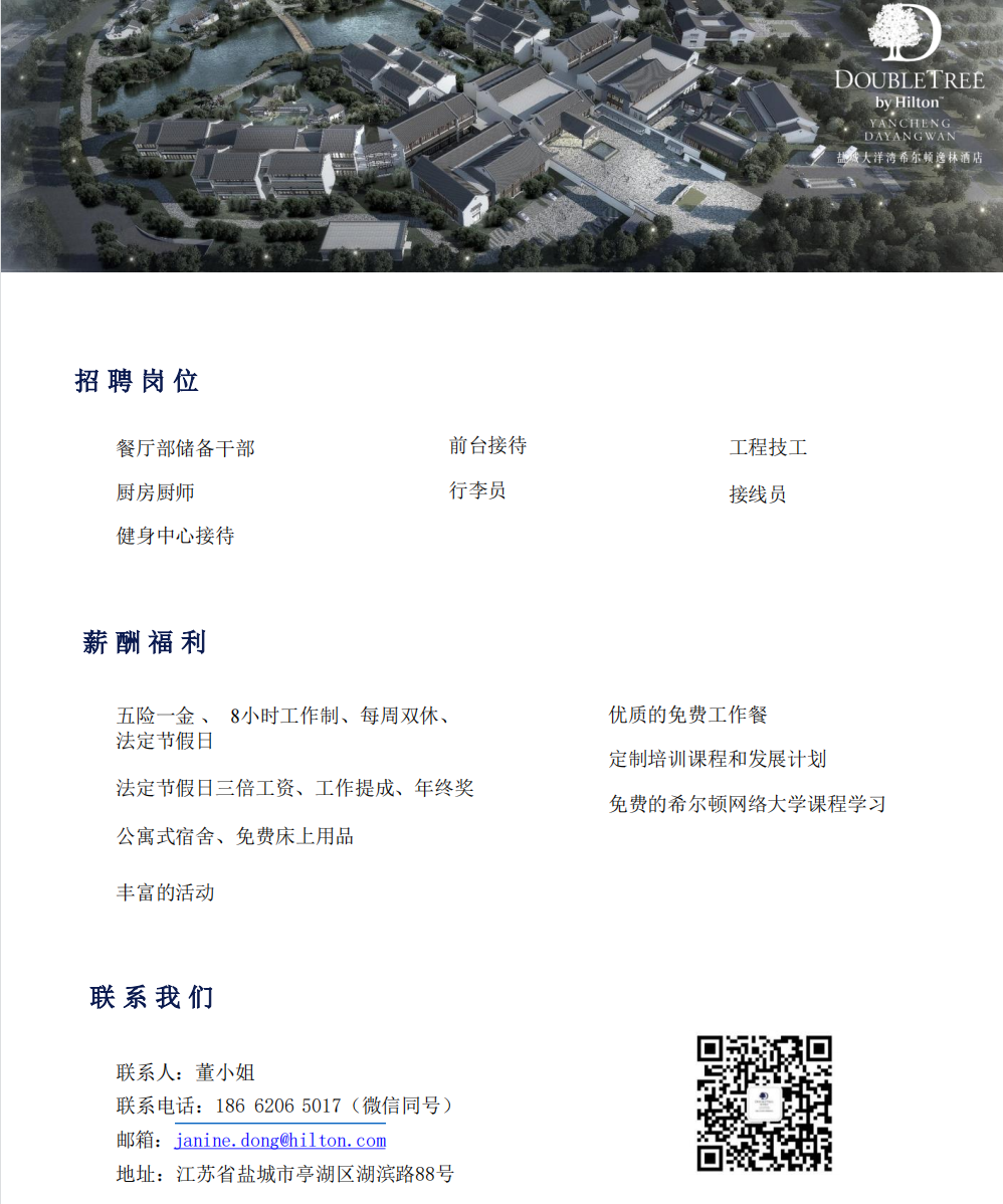 盐城大洋湾希尔顿逸林酒店招聘信息