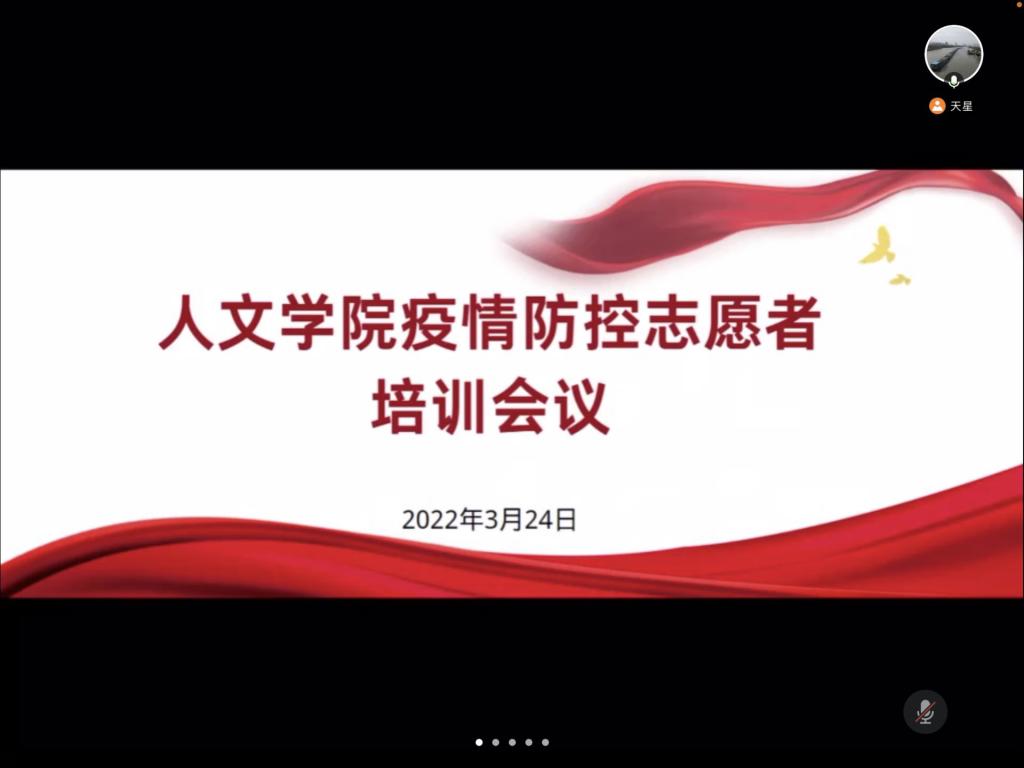 3月24日中午,球盟会在线上召开疫情防控员工志愿者培训会。培训会由分团委副书记邱天星主持,全体员工志愿者参加会议。