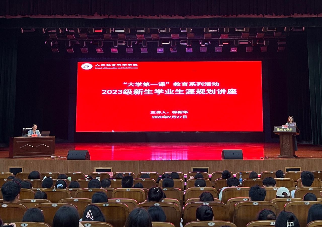 乘风破浪赴山海,逐梦青春向未来。为了使2023级新生尽快适应老员工活,合理规划老员工涯,球盟会于9月27日在行政楼报告厅开展了“大学第一课”教育系列活动。党委学工部部长、员工处处长、招生与就业创业指导处处长徐新华,盐城大纵湖东晋水城酒店有限公司党支部书记、董事长、球盟会2014届旅游管理专业蒋华燕员工应邀主讲。公司党总支书记何登溢、新生辅导员及2023级全体新生480余人参加。活动由公司党总支副书记姚爱华主持。