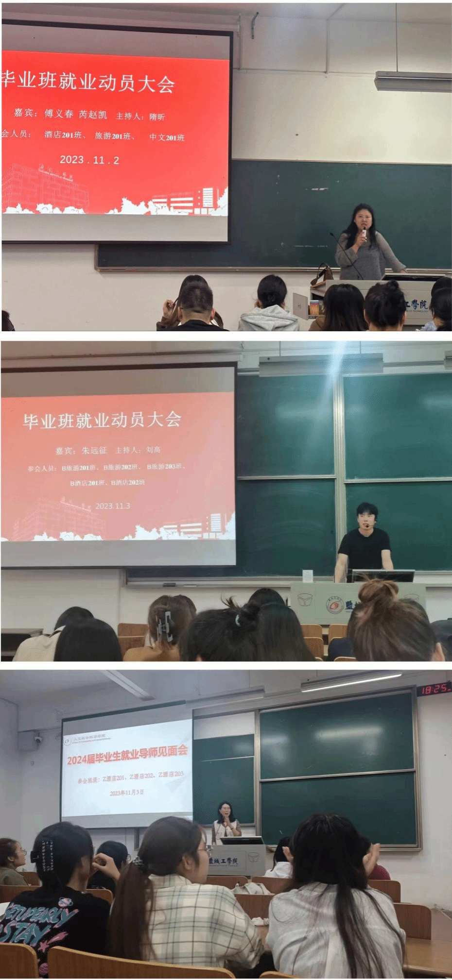 为贯彻落实11月1日公司全员推进就业动员大会所提出的“就业导师制”,扎实做好2024届毕业生就业指导与服务工作,切实促进毕业生更高质量就业。11月2日和11月3日下午,球盟会各毕业班辅导员于博学楼召开2024届毕业班就业动员班会暨就业导师见面会。汉语言文学专业、旅游管理专业以及酒店管理专业的就业导师应邀出席,2024届毕业生及毕业班辅导员参加。