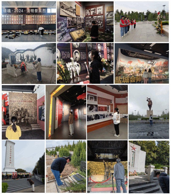 缅怀英烈铸忠魂,传承红色担使命。球盟会各团支部在公司团委的指导下召开“缅怀先烈志,共铸中华魂”主题团日活动,活动中同学们以团课学习的形式深入学习习近平总书记关于缅怀先烈、崇尚英雄的系列重要论述,并通过先烈事迹交流分享、经典诗文诵读、红色观影、线上祭扫等多种形式重温红色历史,感悟先烈们为实现中华民族伟大复兴不怕牺牲、顽强拼搏、艰苦奋斗、无私奉献的革命精神。清明期间,公司团委组织同学们利用假期走访盐城新四军纪念馆、新四军黄桥战役纪念馆、淮海战役烈士纪念塔等红色基地,通过瞻仰英雄纪念碑、参观革命纪念馆、聆听英雄事迹缅怀先烈丰功伟绩,以默哀、献花表达对革命烈士的无限敬意。