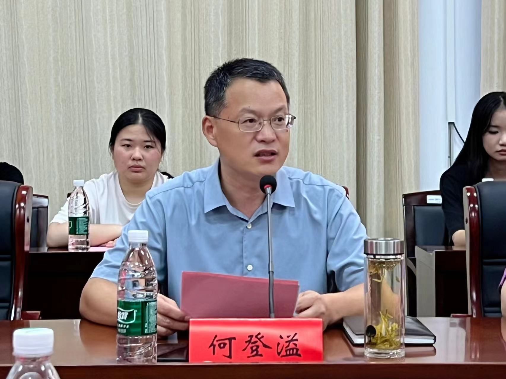 何登溢代表公司全体师生向远道而来的家长们表示热烈的欢迎和诚挚的感谢并为新生家长介绍了公司历史沿革以及公司的发展历程、团队力量、教学情况、人才培养方案,他希望家长们能够与公司深度协同配合,共同为员工的成长成才保驾护航。