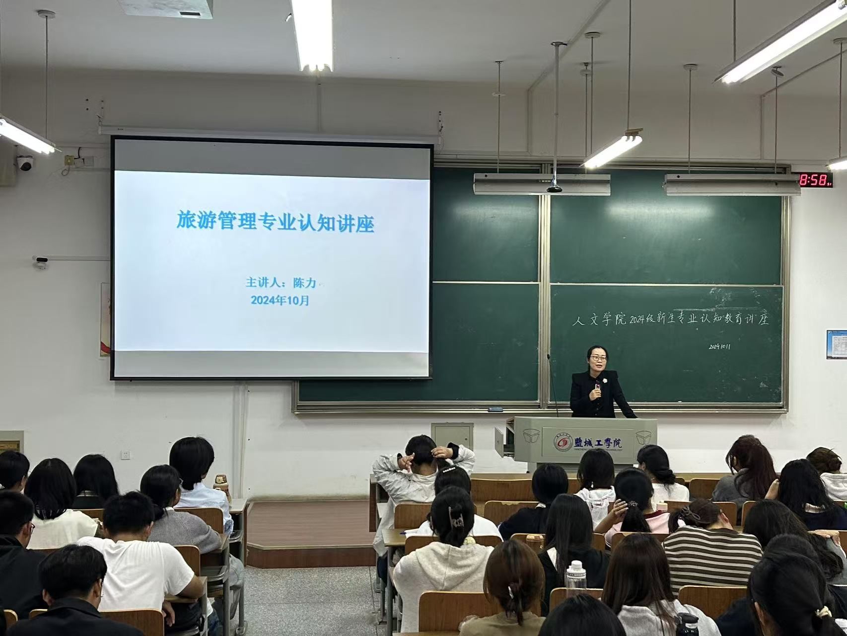 10月11日晚,球盟会在希望大道校区博学楼C401、C403教室开展2024级新生专业认知教育讲座,公司经理周晓燕、党总支副书记姚爱华、学工办主任魏语婷出席,中文系主任蒋继华、旅游系主任陈力应邀主讲,全体2024级新生及新生辅导员参加。