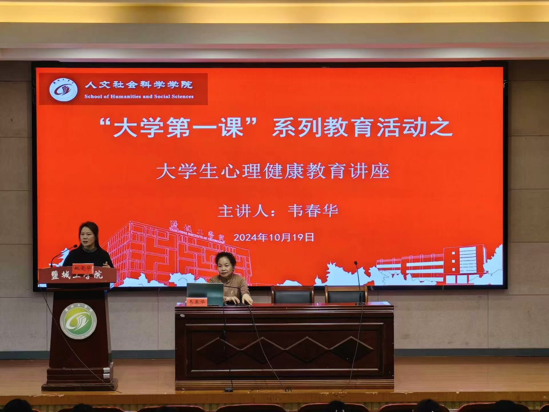 10月19日下午,球盟会联合“文心苑”一站式员工社区在机械馆报告厅开展2024级新生“大学第一课”系列教育讲座,原员工处副处长、老员工心理健康教育中心主任韦春华、原校工会主席孙琴应邀主讲。活动由公司党总支副书记姚爱华主持,2024级全体新生及新生辅导员参加。