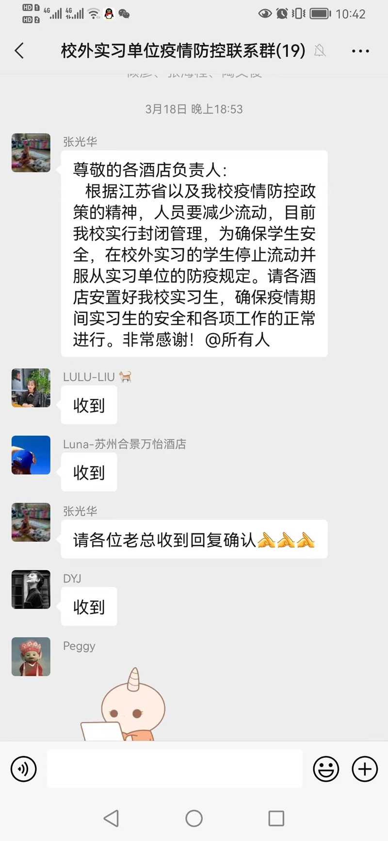 各专业系召开线上会议,传达疫情防控相关政策要求。4月8日,中文系、旅游系和酒店系分别召开了2022届员工疫情防控工作线上会议,要求在思想上高度重视防疫工作,既要遵守公司的疫情管理规定,也要服从社区防疫管理,加强自身防护;时刻绷紧疫情防控这根弦,主动纳入社区网格化管理,按要求进行核酸检测;健康码和行程码如有变化,及时上报公司辅导员和论文指导老师。