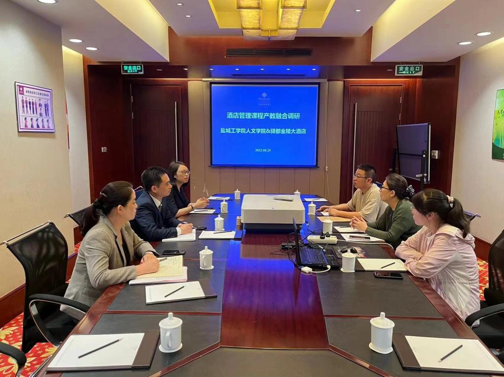 为响应江苏省教育厅和qm球盟会关于产教融合型课程建设的号召,更好地推进公司酒店管理专业学科的建设以及餐饮实训工作的进行,经公司领导同意,8月29日下午酒店管理系部分老师赴盐城驿都金陵大酒店开展座谈与实地调研。