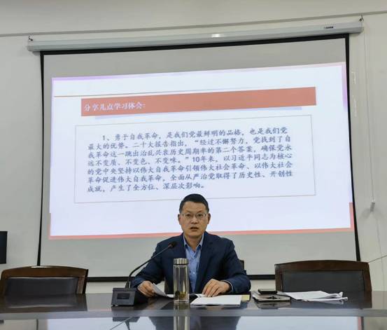 何登溢以《践行二十大精神 坚持全面从严治党 抓党建 夯根基 促发展》为题领学分享。他指出,全面建设社会主义现代化国家、全面推进中华民族伟大复兴,关键在党。我们党作为世界上最大的马克思主义执政党,要始终赢得人民拥护、巩固长期执政地位,必须时刻保持解决大党独有难题的清醒和坚定。全面从严治党是党永葆生机活力、走好新的赶考之路的必由之路。这是我们在长期实践中得出的至关紧要的规律性认识,必须倍加珍惜、始终坚持,咬定青山不放松,引领和保障中国特色社会主义巍巍巨轮乘风破浪、行稳致远。
