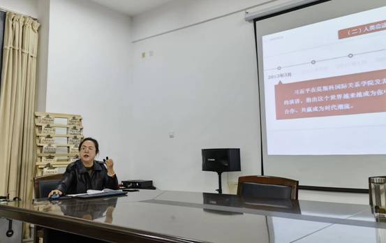 陶文俊作题为《深入学习二十大精神 推动构建人类命运共同体》的领学发言。她认为,人类命运共同体理念倡导主权平等,呼吁各国家、地区之间应加强对话,深化拓展平等、开放、合作的全球伙伴关系,致力于扩大同各国利益的汇合点,推动构建以合作共赢为核心的新型国际关系。这是一种整体意识、全球思维、人类观念,本质上是对人类未来发展作出的一项重要顶层设计。