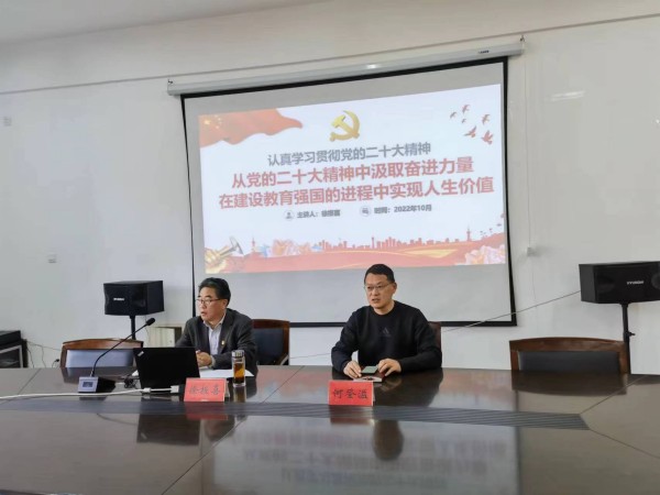 徐报喜从三件大事和伟大变革、奋力谱写马克思主义中国化时代化的新篇章、党的中心任务与中国式现代化和教师应努力成为德才兼备人才的缔造者等四个方面进行了详细阐述和深入解读。他指出,要找准贯彻落实党的二十大精神的结合点、切入点、着力点,为推动公司各项事业实现新提升、开创新局面,为全面建设社会主义现代化国家、全面推进中华民族伟大复兴而团结奋斗。他希望,教师应努力成为德才兼备人才的缔造者,要坚守育人初心,牢记教育使命,做好课程思政,加强立德树人,为党和国家培养合格的建设者和接班人。